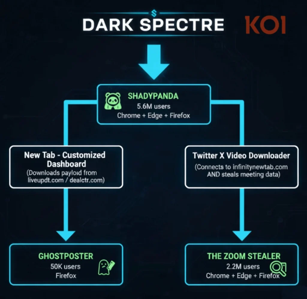Судя по используемой инфраструктуре, DarkSpectre — это тот же связанный с Китаем злоумышленник, который стоял за ранее задокументированными GhostPoster, нацеленным на пользователей Firefox, и ShadyPanda, который доставлял шпионское ПО пользователям Chrome и Edge.
