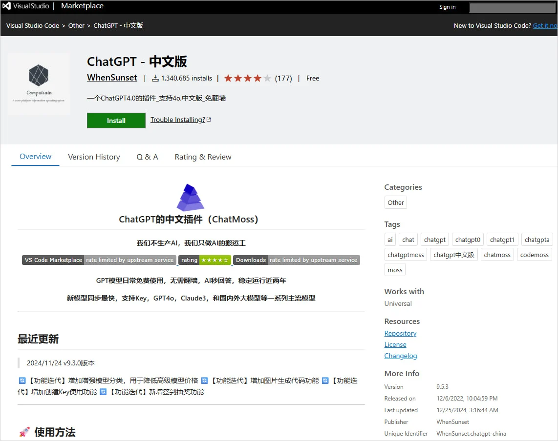 - ChatMoss (CodeMoss) (издатель: zhukunpeng, 150 тыс. установок)