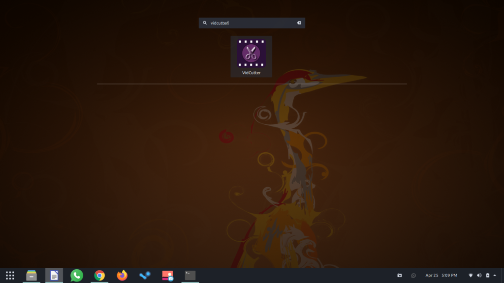 Перейдите в меню «Действия» в Ubuntu и найдите VidCutter, чтобы открыть его.