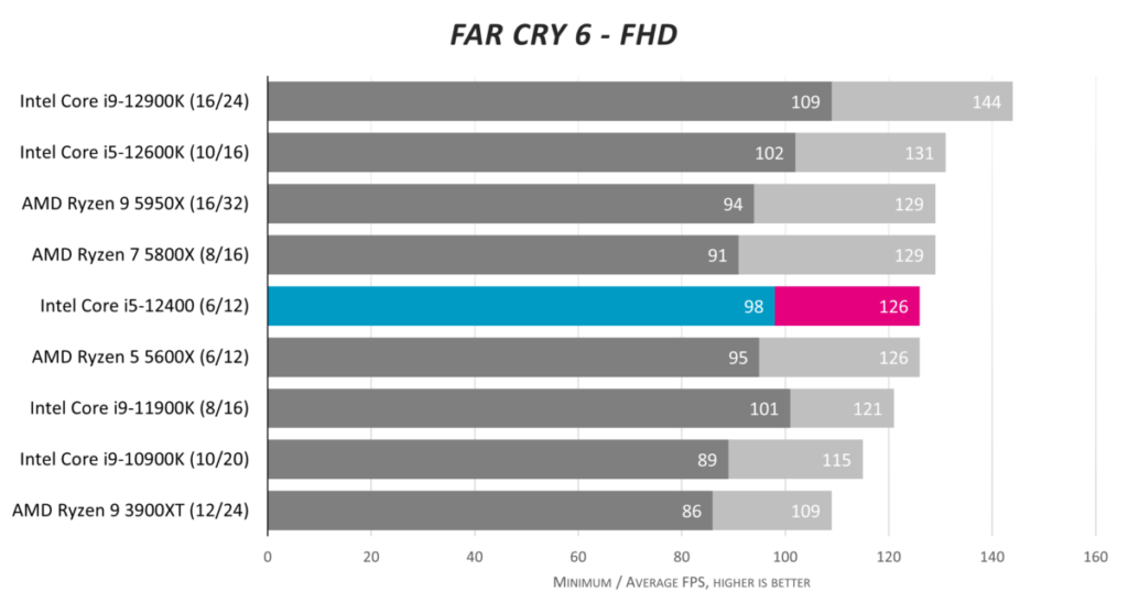 В играх не так просто использовать тот или иной основной чип. Наши результаты показывают, что Intel Core i5-12400 и AMD Ryzen 5 5600X практически идеально подходят друг другу.