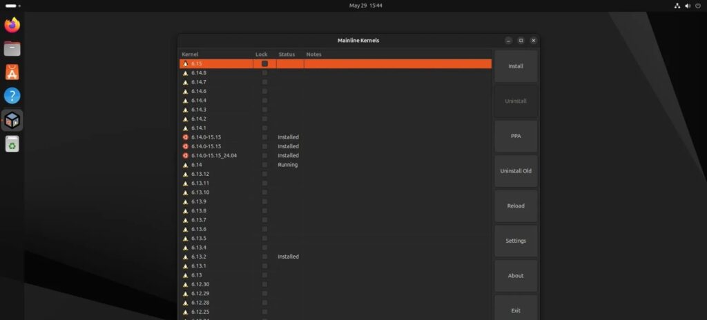 Способ 1. Установите ядро Linux 6.15 в Ubuntu с помощью инструмента «Mainline Kernels»