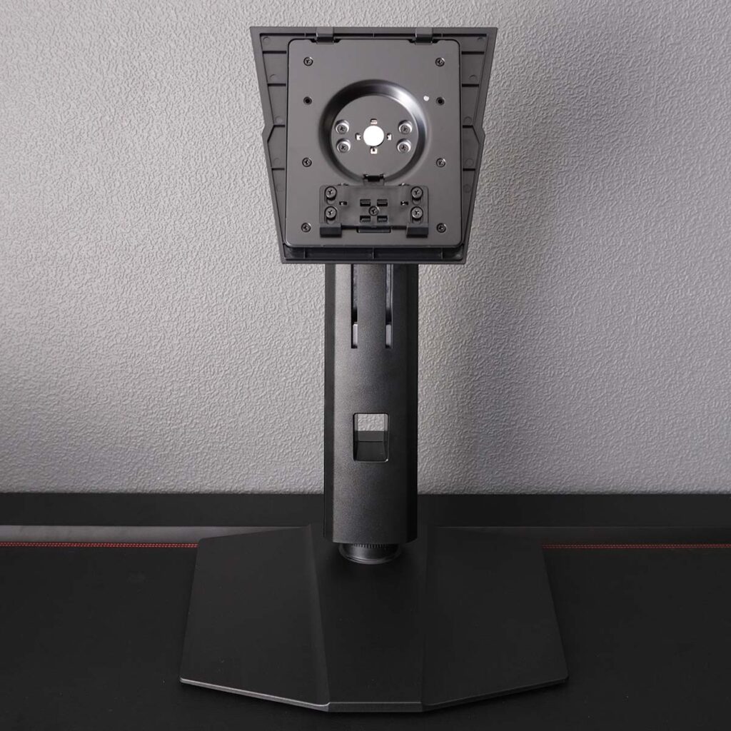Нам потребовалось меньше пяти минут, чтобы собрать монитор без каких-либо инструментов. Основание и подставка соединяются с помощью одного винта, а экран крепится двумя защёлками, которые фиксируются на месте.
