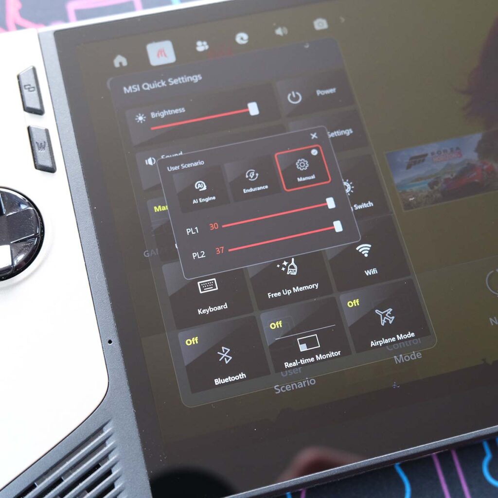 Microsoft ещё не внедрила консольный интерфейс Windows, поэтому MSI разработала «Центр М» и оверлей «Быстрые настройки», чтобы упростить управление Claw 8 AI+. Для доступа к ним достаточно нажать кнопку на лицевой панели, и в большинстве случаев они работают без сбоев, но пользоваться ими не всегда удобно.