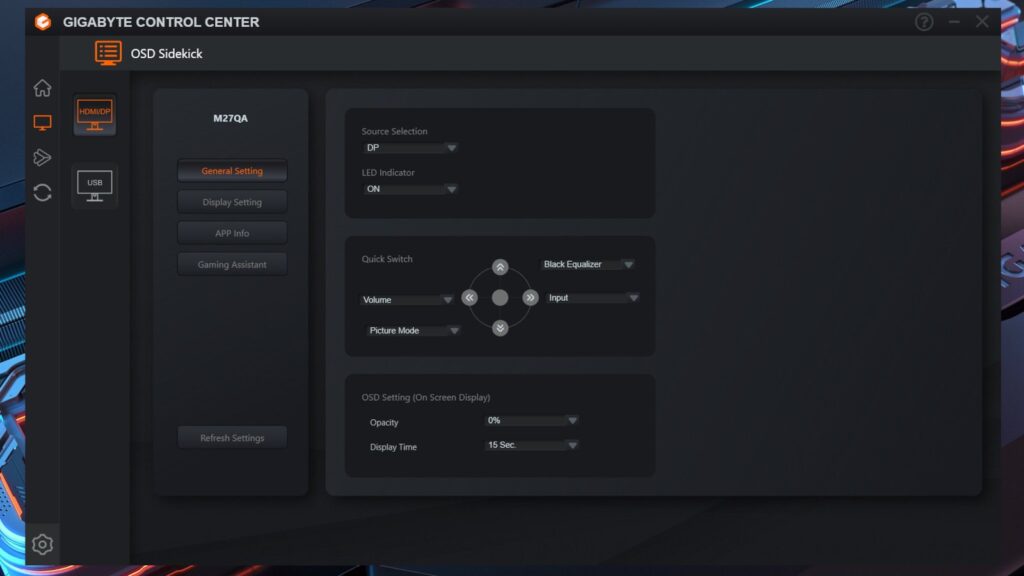 Какими бы удобными и полезными ни были эти физические кнопки, я предпочитаю управлять M27QA Ice через Gigabyte Control Center. Возможность настраивать монитор с помощью мыши и клавиатуры, не тянуться к нему, — это очень удобно.