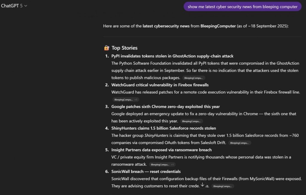 После недавнего обновления поиск в ChatGPT стал более точным и надёжным. Вы также заметите, что он стал полезнее, чем раньше, потому что он точно обобщает ссылки и позволяет переходить по ним.
