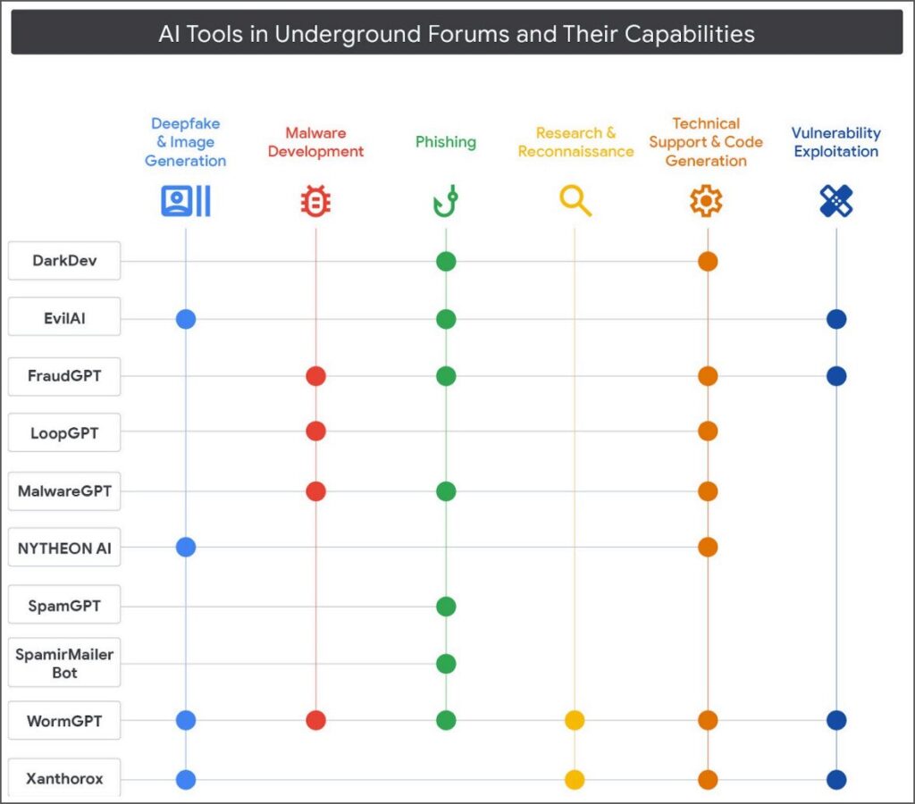 Исследователи Google обнаружили, что на подпольных торговых площадках, как англоязычных, так и русскоязычных, растёт интерес к вредоносным инструментам и сервисам на основе искусственного интеллекта, поскольку они снижают технические требования для проведения более сложных атак.