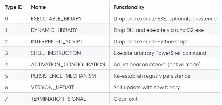 Для хостов, подключенных к домену и относящихся к корпоративной среде, злоумышленники используют ModeloRAT, который может выполнять системную разведку, запускать команды PowerShell, изменять реестр, внедрять дополнительные полезные нагрузки и обновляться.