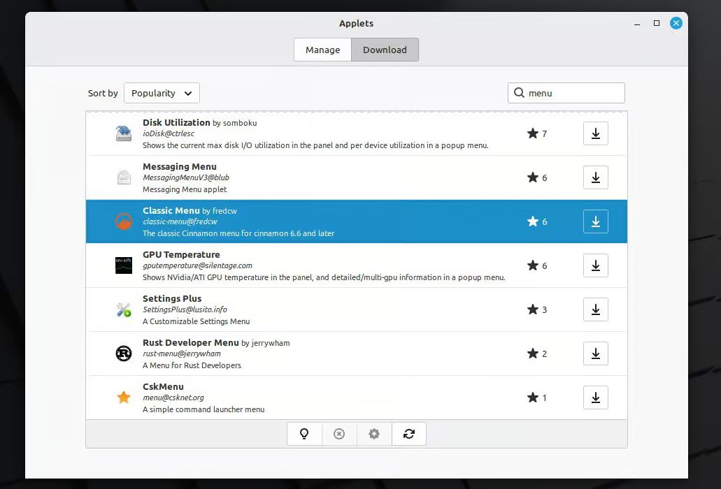 Наконец, если новое меню Cinnamon вам не по душе, вы всегда можете вернуться к классическому, которое можно установить из коллекции Spices от Cinnamon.