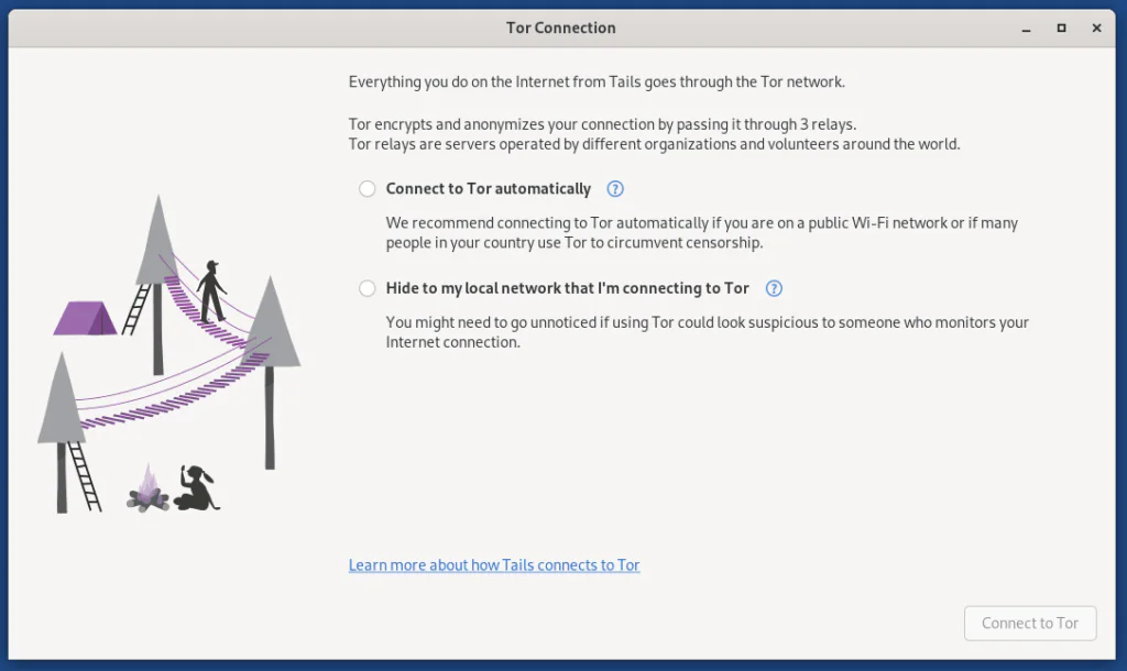 Tails — это проект на основе Tor, вдохновлённый дистрибутивом Debian. Tails работает на базе Tor Foundation, то есть на луковом маршрутизаторе. Предполагается, что это безопасная операционная система, которую трудно отследить с помощью обычных инструментов/приёмов.