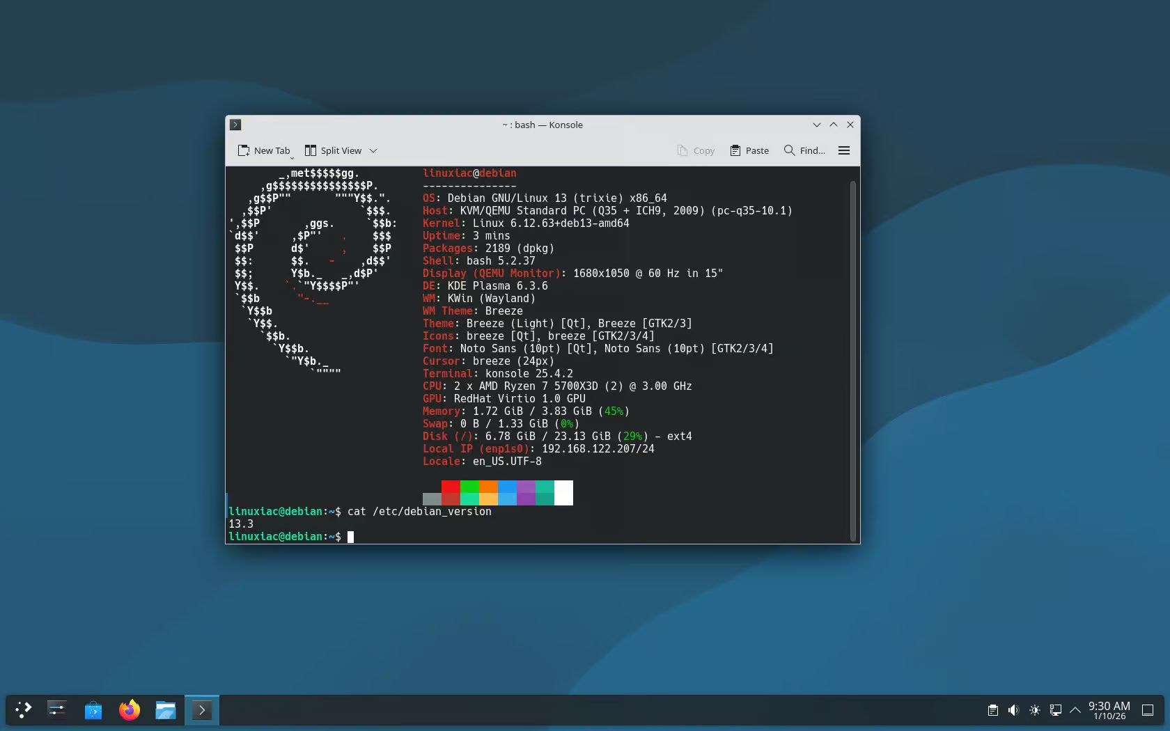 В очередной раз отметим, что в Debian 13.3 не добавлено никаких новых функций по сравнению с выпуском «Trixie». Все изменения касаются исправления ошибок и устранения проблем с безопасностью в некоторых пакетах. Если вы уже используете эту версию, просто выполните приведённую ниже команду, чтобы обновить систему до последней стабильной версии.