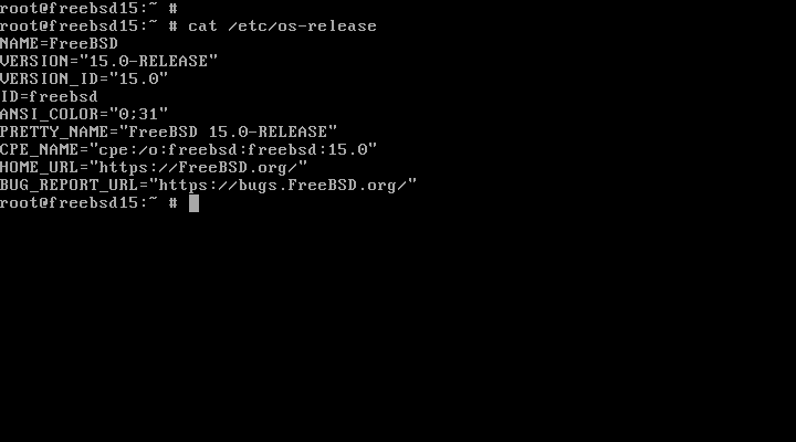 FreeBSD также хранит информацию о версии в нескольких системных файлах. Вы можете прочитать эти файлы с помощью cat. Этот метод работает даже в случае сбоя некоторых команд, поэтому он является безопасным запасным вариантом.