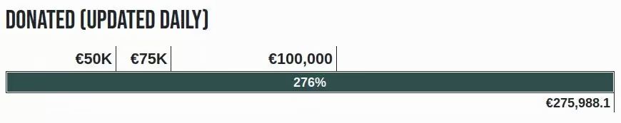 Для сравнения: кампания 2025 года поставила перед собой более высокую цель — 100 000 евро — и уже собрала 276 000 евро, достигнув 276 % от поставленной цели только за счёт сбора средств, что свидетельствует о значительно более активной и целенаправленной реакции сообщества.