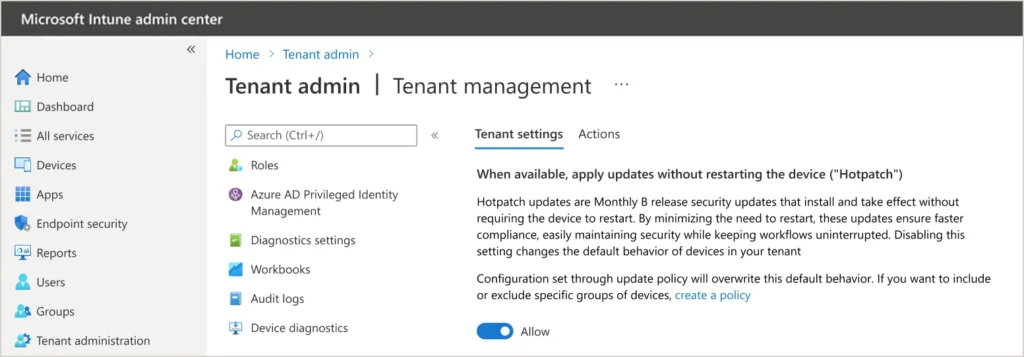 Также администраторы смогут отключить hotpatch на уровне организации или включить его только для отдельных устройств.