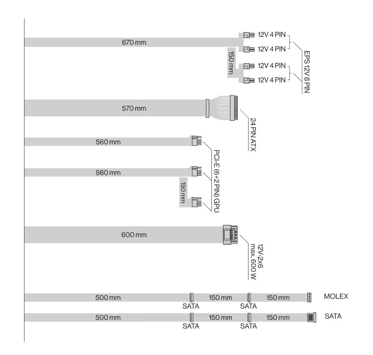 В частности, модель мощностью 750 Вт можно использовать для систем с высокопроизводительными процессорами, такими как AMD Ryzen 9 или Intel Core i9, в сочетании с такими мощными графическими процессорами, как AMD RX 9070 XT или Nvidia RTX 5080/5090. Она оснащена одним кабелем 12 В-2×6 мощностью 600 Вт, а модели мощностью 550–650 Вт — кабелями мощностью 300 и 450 Вт.