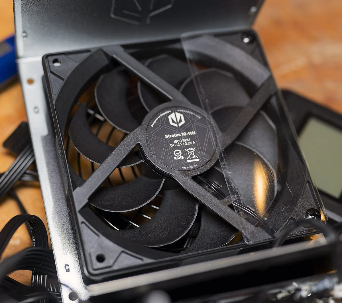 Сердцем системы охлаждения является 120-миллиметровый вентилятор Stratus. Он оснащен гидродинамическим подшипником и вращается со скоростью до 1800 об/мин.
