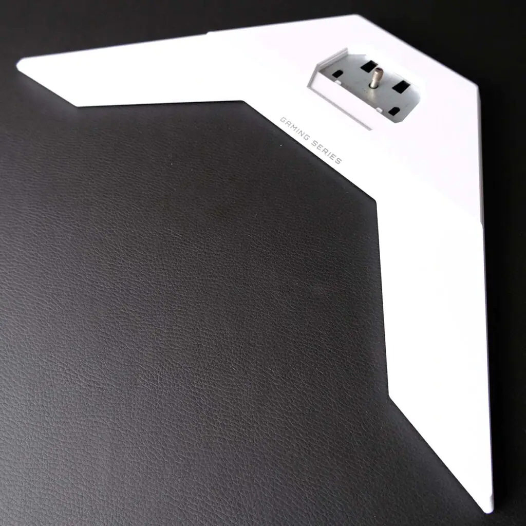 В нижней части трибуны есть один вырез, который позволяет удобно разместить кабели. Промежутка достаточно, чтобы вместить все провода, которые вы хотите подключить к M27QA Ice, но я бы посоветовал держать под рукой одну-две кабельные стяжки, чтобы всё выглядело аккуратнее.