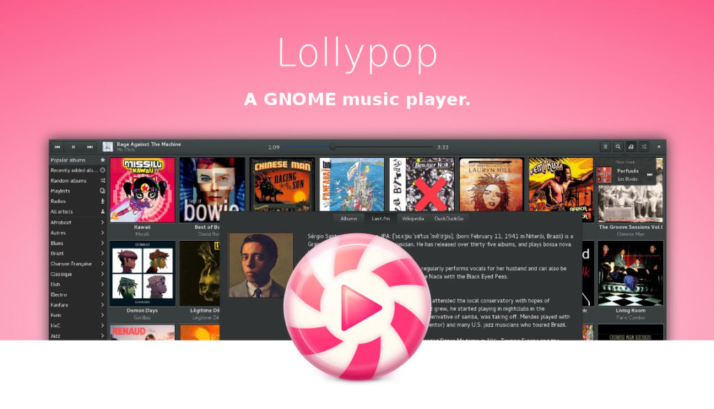 Lollypop — это еще одно бесплатное приложение для музыкального плеера с открытым исходным кодом для Gnome с интеграцией радио.