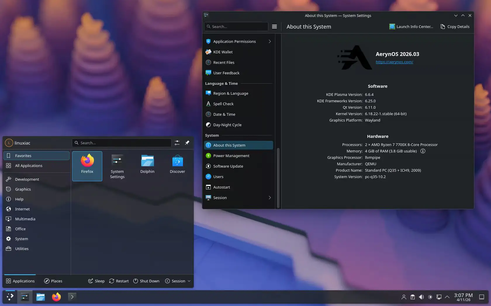 Помимо смены логотипа, AerynOS, все еще находящаяся на стадии альфа-тестирования, продолжает знакомить пользователей с новейшими разработками в области открытого программного обеспечения. Среди последних обновлений — переход с Python 3.11 на 3.14, изменения в упаковке ядра, а также установка последних версий KDE Plasma 6.6.4, Frameworks 6.25, Qt 6.11, PipeWire 1.6.3, Flatpak 1.16.5, Docker 29.3.1, Nano 9.0 и других.