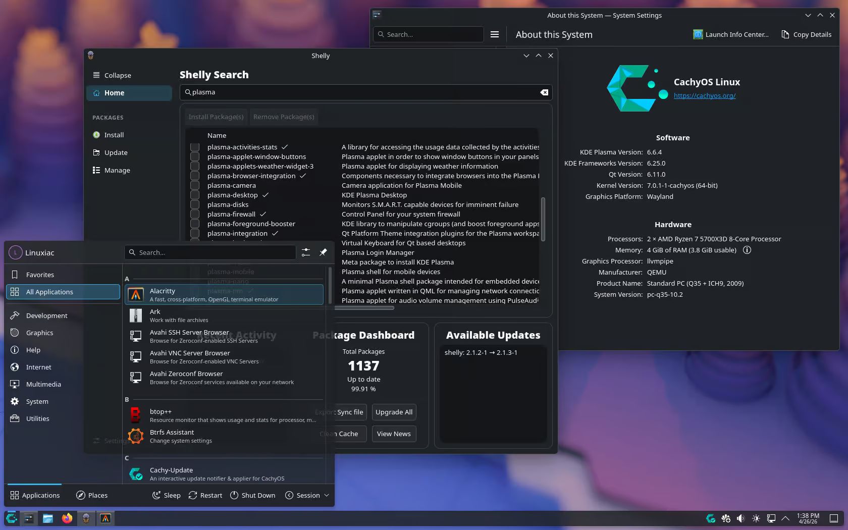 Shelly — это новый графический менеджер пакетов в CachyOS, который заменил Octopi и предлагает более удобное управление приложениями и обновлениями.