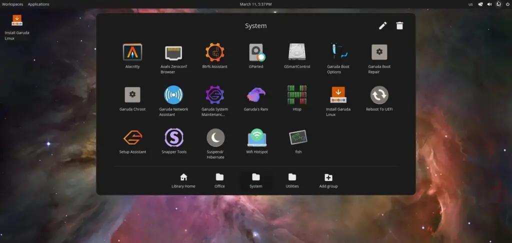 Однако команда Garuda Linux взяла на себя смелость включить в дистрибутив совершенно новое приложение Welcome под названием Garuda Rani, а также Garuda Settings Manager, веб-браузер FireDragon, Garuda Boot Repair, Garuda Chroot, Garuda Network Assistant, Garuda System Maintenance, Garuda Boot Options и другие инструменты.