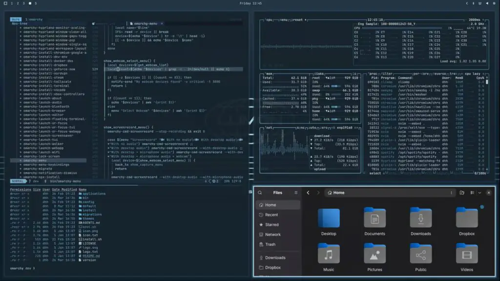 Omarchy позиционируется как готовая к работе система “из коробки”. Она включает всё необходимое: редакторы кода, терминалы, инструменты разработки и даже приложения для повседневной работы.