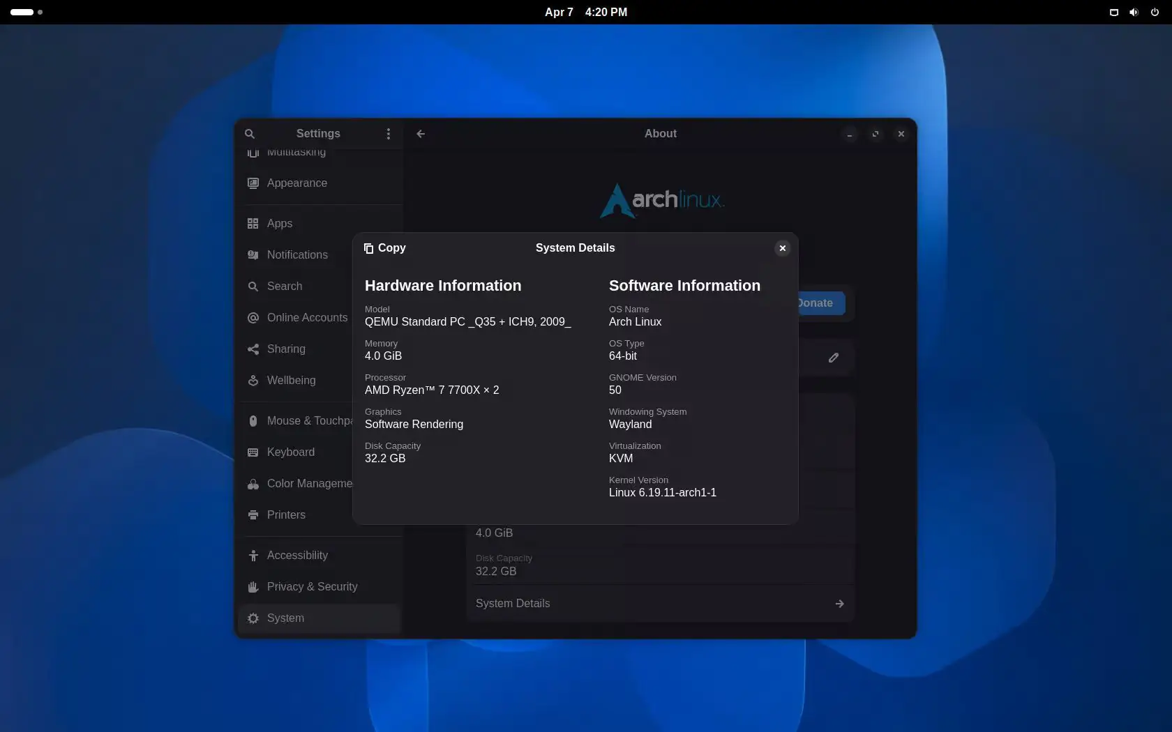 Когда GNOME 50 появился в Arch Linux