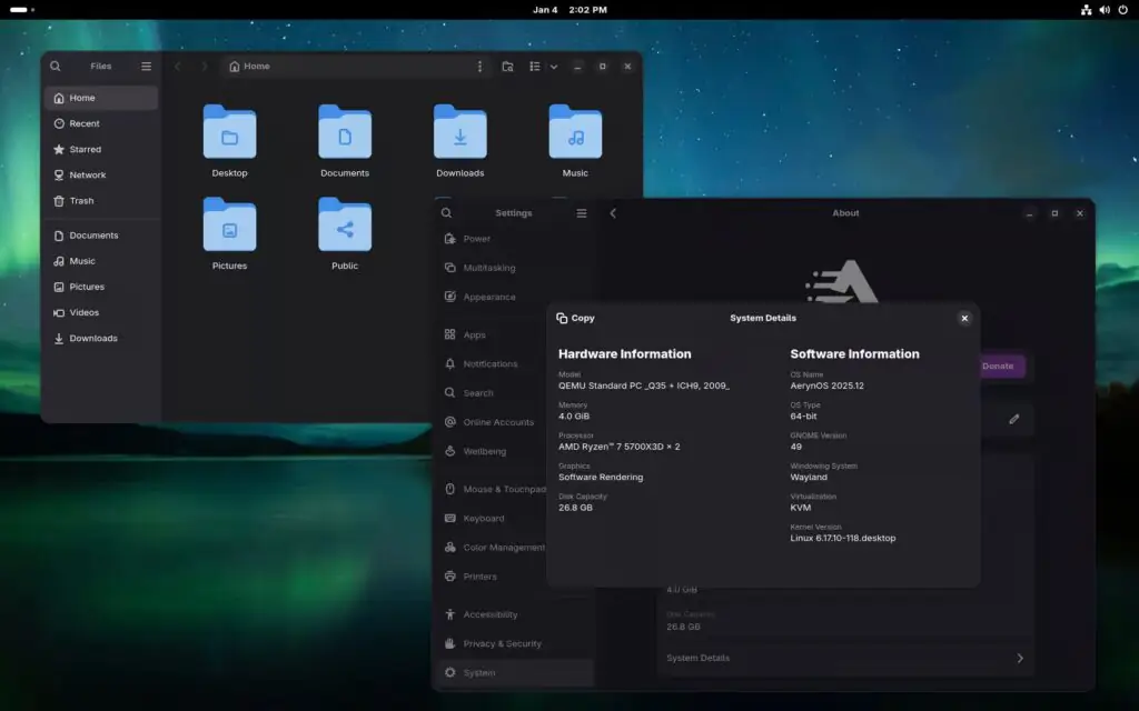AerynOS (ранее известная как Serpent OS) — это дистрибутив Linux с непрерывным обновлением на основе атомарных обновлений (не путать с неизменяемостью), который в настоящее время находится на стадии альфа-тестирования. Вместо традиционного обновления пакетов на месте AerynOS обрабатывает обновления как атомарные транзакции. Если какая-либо часть обновления завершается сбоем, вся транзакция откатывается, что предотвращает частичные обновления и сохраняет целостность системы.