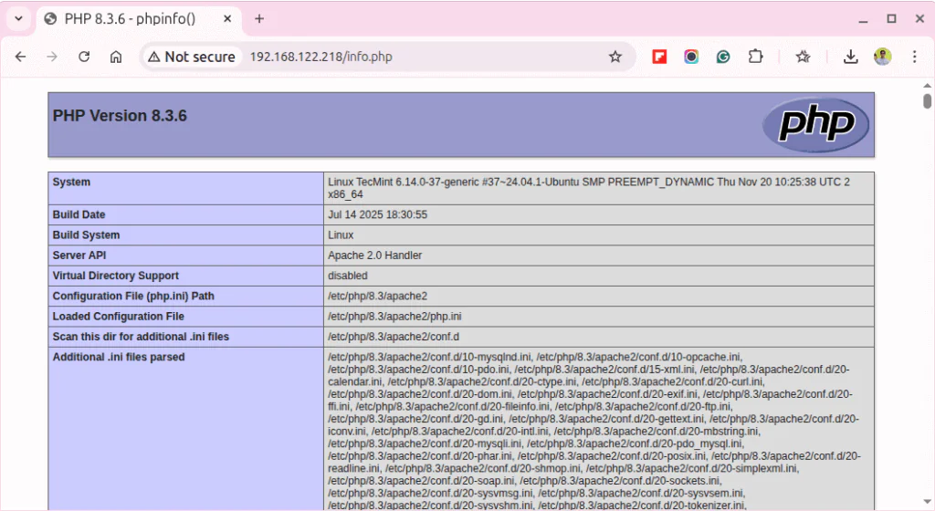 sudo apt install php8.3 libapache2-mod-php8.3 php8.3-mysql php8.3-xml php8.3-gd php8.3-curl php8.3-mbstring php8.3-zip