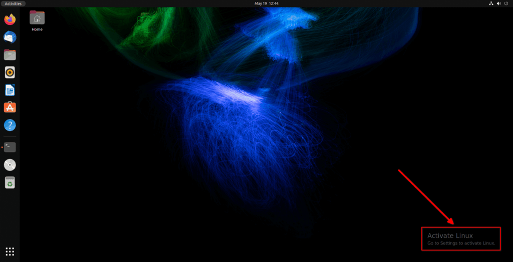 Теперь вы увидите уведомление с водяным знаком «Активировать Linux» в правом нижнем углу рабочего стола, как в нелицензионной копии Windows.