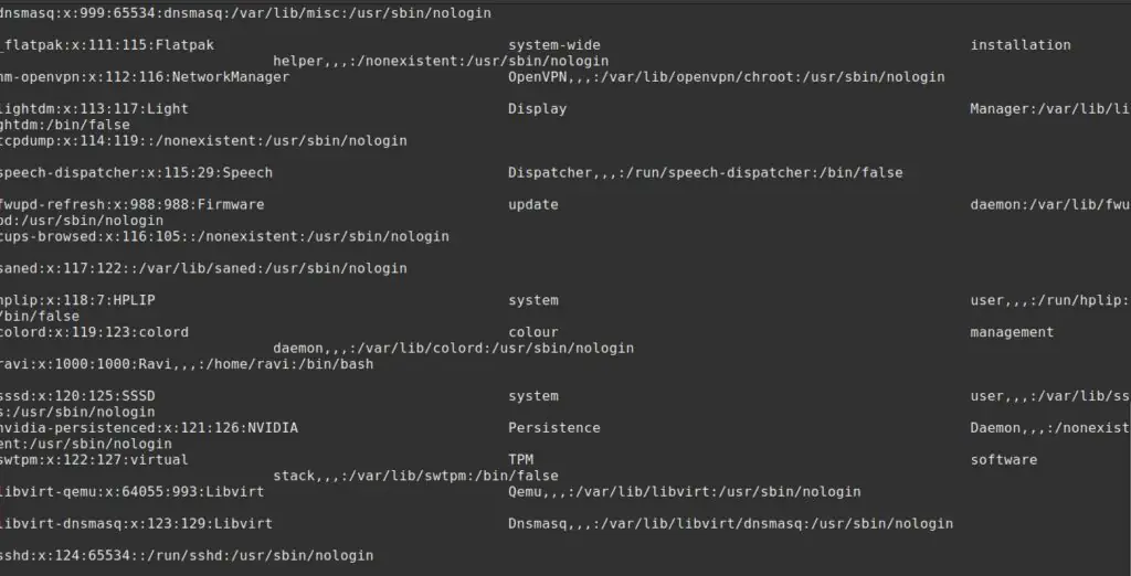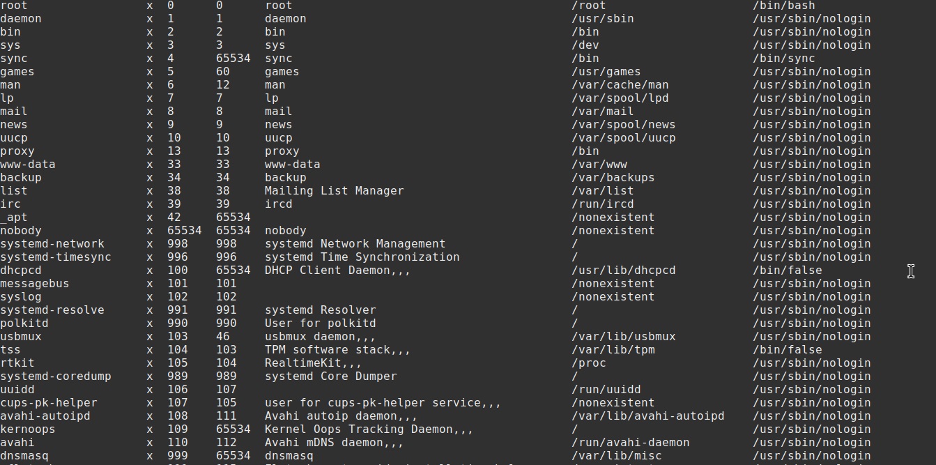 column -t -s ":" -n /etc/passwd # только для Debian/Ubuntu