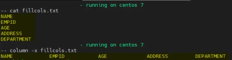 Команда column ведет себя по-разному в разных дистрибутивах. В системах на базе Debian традиционно использовалась версия bsdmainutils, а в системах на базе RHEL — версия util-linux, которая новее и предлагает больше возможностей.