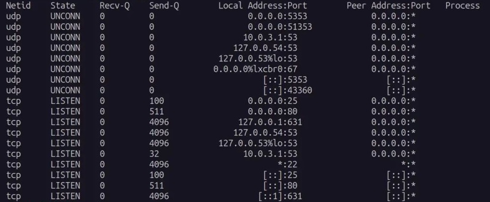 По этой причине команда ss — идеальный инструмент для вывода списка всех открытых портов в вашей системе Linux. Для этого достаточно добавить к команде опцию -tulpn.