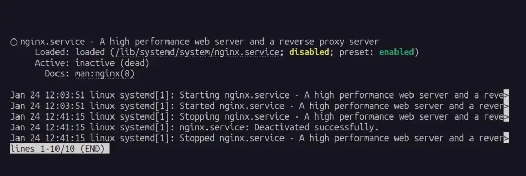 Проверьте состояние службы NGINX