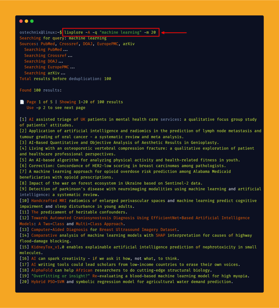 После установки вы можете сразу приступить к поиску. Например, если вы хотите найти двадцать статей о «машинном обучении» из всех источников, просто введите: