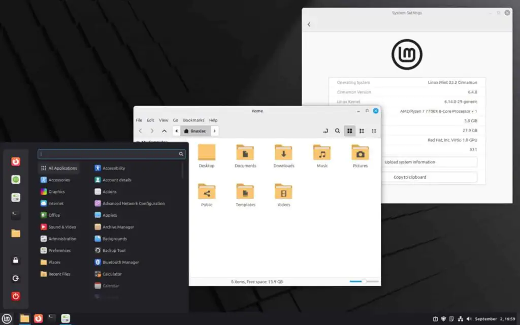 Linux Mint 22.2 «Zara» теперь доступен для загрузки с аутентификацией по отпечаткам пальцев, ядром 6.14, Mesa 25.0.7, Cinnamon 6.4.8 и улучшениями пользовательского интерфейса.