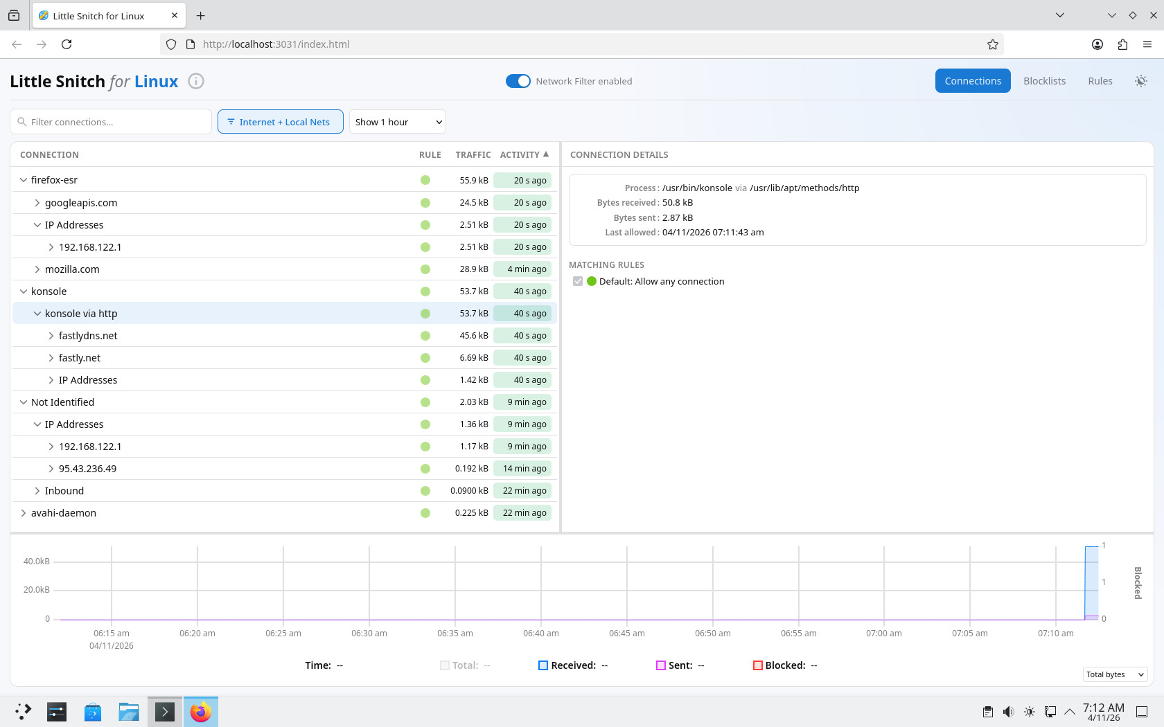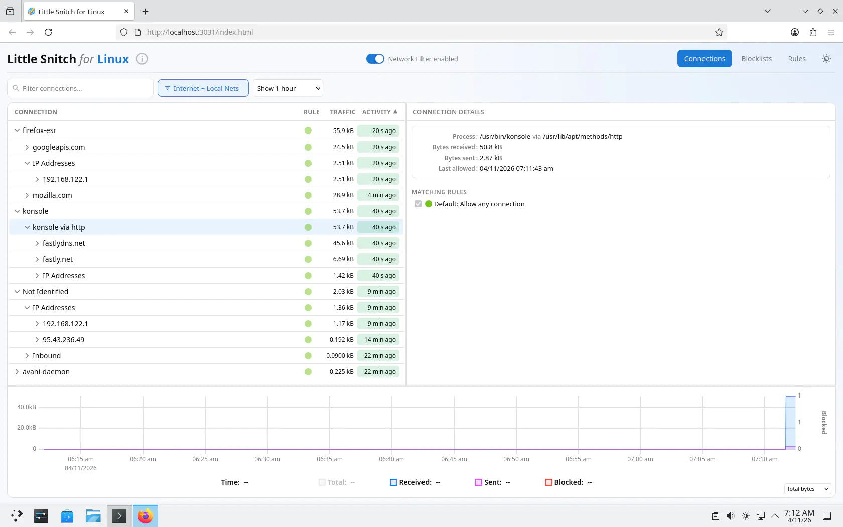 В своей реализации для Linux Little Snitch использует eBPF для перехвата трафика на уровне ядра, Rust для основной логики приложения и веб-интерфейс вместо нативного пользовательского интерфейса для настольных компьютеров. Хорошая новость в том, что такая структура также позволяет отслеживать удалённые системы Linux с другого устройства.
