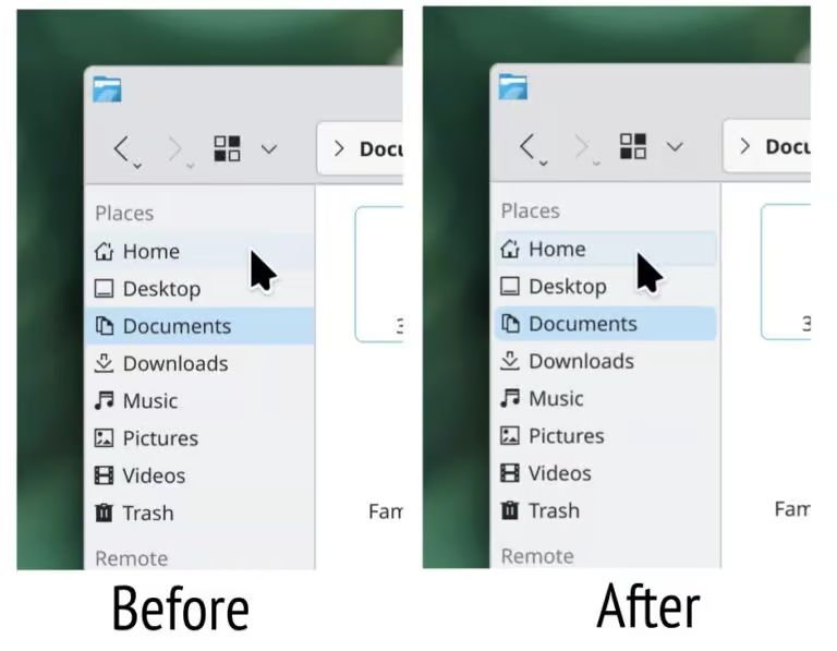 • Единый визуальный язык. Скруглённые подсветки приводят выделение элементов к общей дизайн-концепции Plasma 6, где активно используются мягкие формы.
