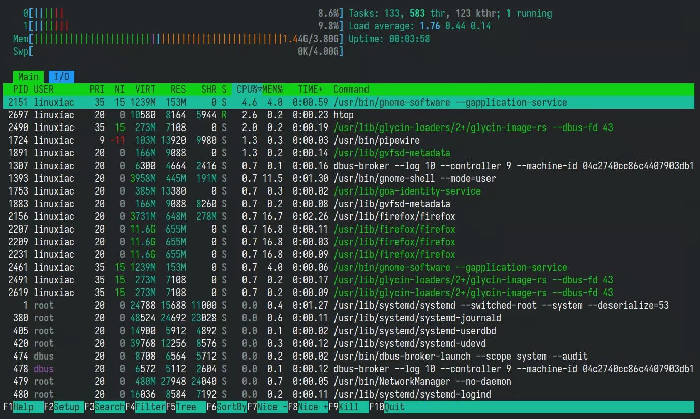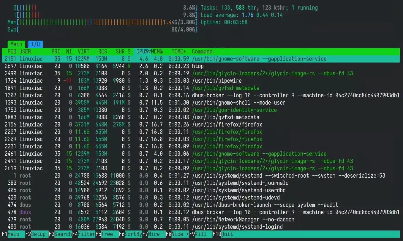 Вышел системный монитор htop 3.5 с экраном обратной трассировки и новыми метриками