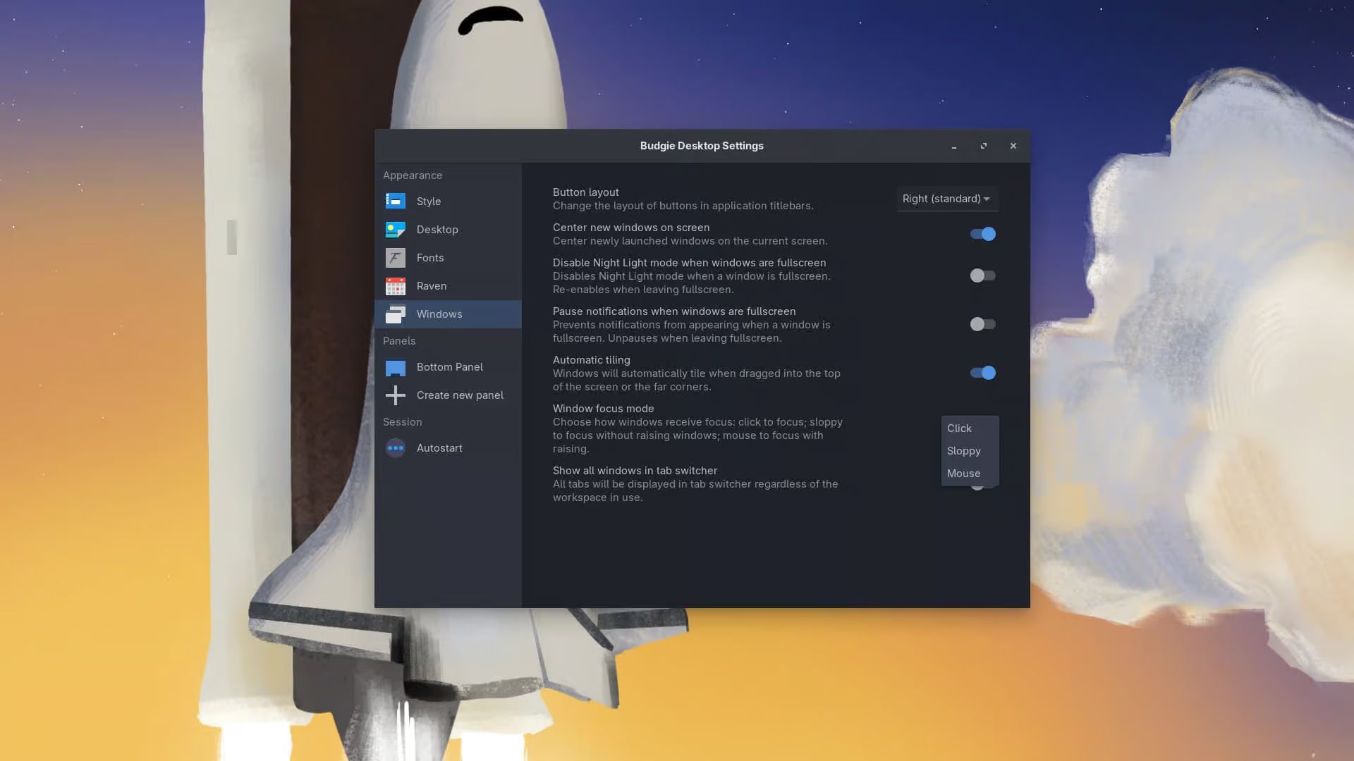 Интеграция с Wayland также улучшилась благодаря расширенной поддержке Labwc. В Budgie 10.10.1 реализована полная поддержка неаккуратного фокуса на окнах, которая дополняет существующие режимы фокусировки по клику и с помощью мыши.
