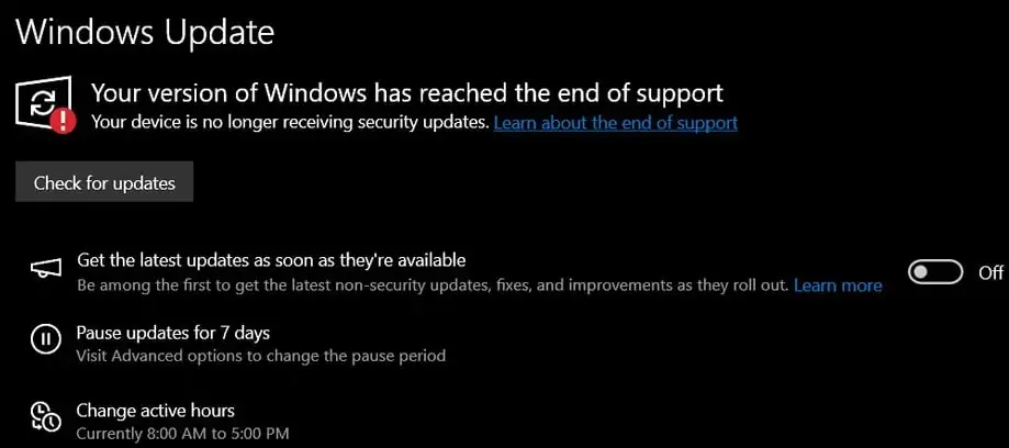 Известная проблема была подтверждена на прошлой неделе после массовых сообщений пользователей о том, что на странице «Параметры обновления Windows» появилось предупреждение о том, что «срок поддержки вашей версии Windows истёк» после выхода обновления во вторник в прошлом месяце.