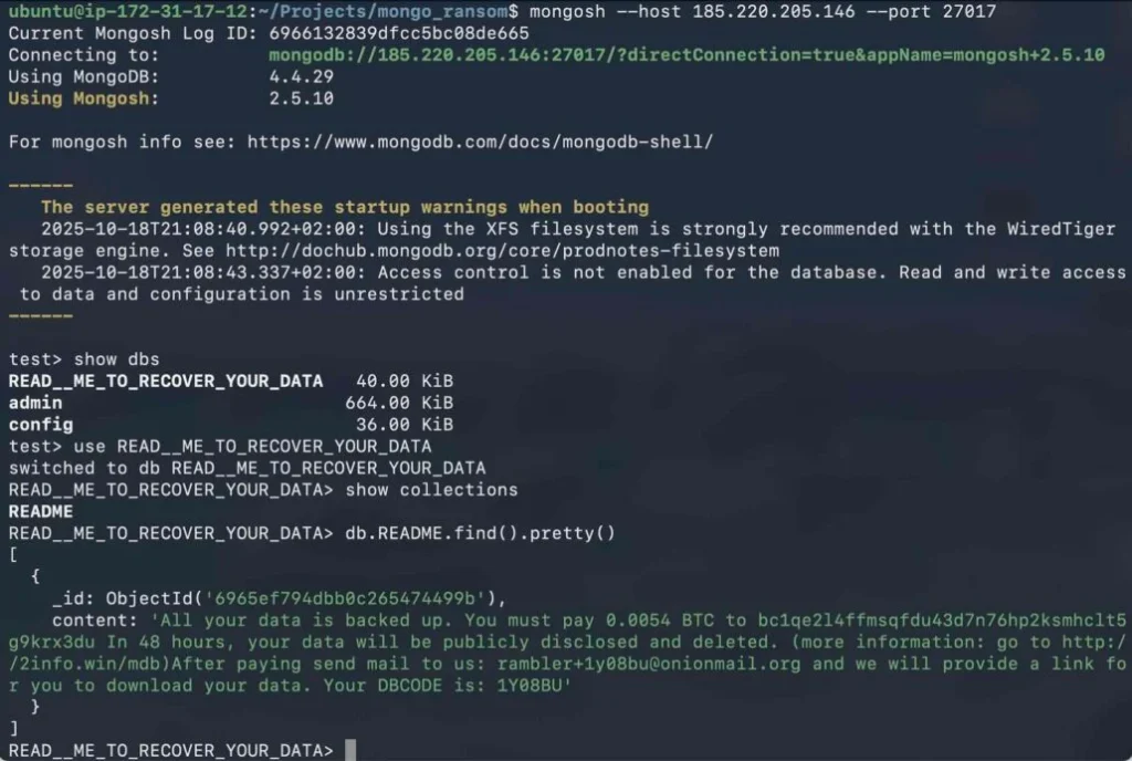 Злоумышленники атакуют незащищённые экземпляры MongoDB, используя автоматизированные методы вымогательства данных и требуя от владельцев небольшие суммы за восстановление данных.