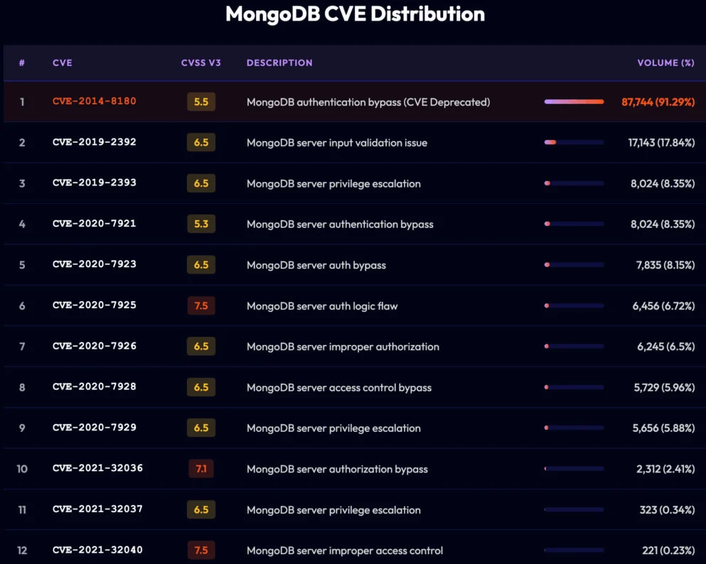 Помимо слабых мер аутентификации, исследователи также обнаружили, что почти половина (95 000) всех серверов MongoDB, подключённых к интернету, работают на старых версиях, уязвимых для уязвимостей нулевого дня. Однако большинство из них могут использоваться только для атак типа «отказ в обслуживании» и не позволяют удалённо выполнять код.