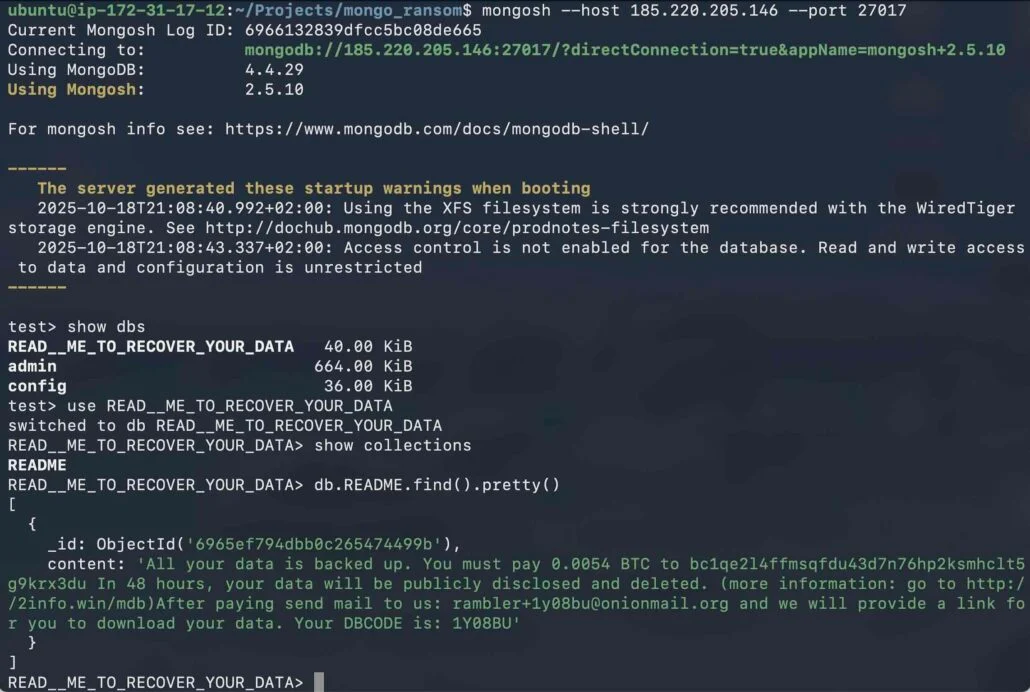 Злоумышленники атакуют незащищённые экземпляры MongoDB, используя автоматизированные методы вымогательства данных и требуя от владельцев небольшие суммы за восстановление данных.