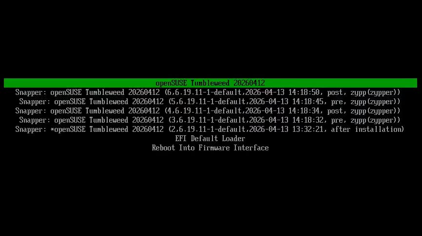 В openSUSE Tumbleweed в качестве загрузчика по умолчанию для новых установок теперь используется systemd-boot вместо GRUB2-BLS. Сразу уточню: это изменение касается только новых установок. В существующих системах Tumbleweed по-прежнему будет использоваться GRUB, если только пользователи не переключатся на systemd-boot вручную.