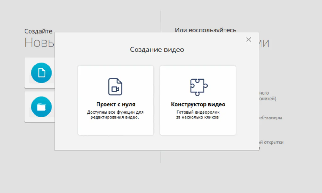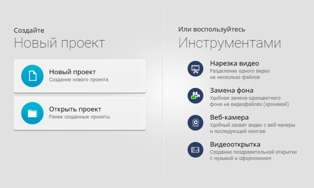 1. Запустите ВидеоМОНТАЖ. Откроется такое окно, кликните «Новый проект».