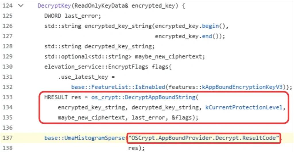 Google разработал технологию Application‑Bound Encryption (ABE) для браузера Chrome, начиная с версии 127, чтобы защитить такие данные, как пароли и куки. Мастер‑ключ должен оставаться зашифрованным на диске, а его расшифровка требовала бы обращения к системному сервису с повышенными привилегиями.