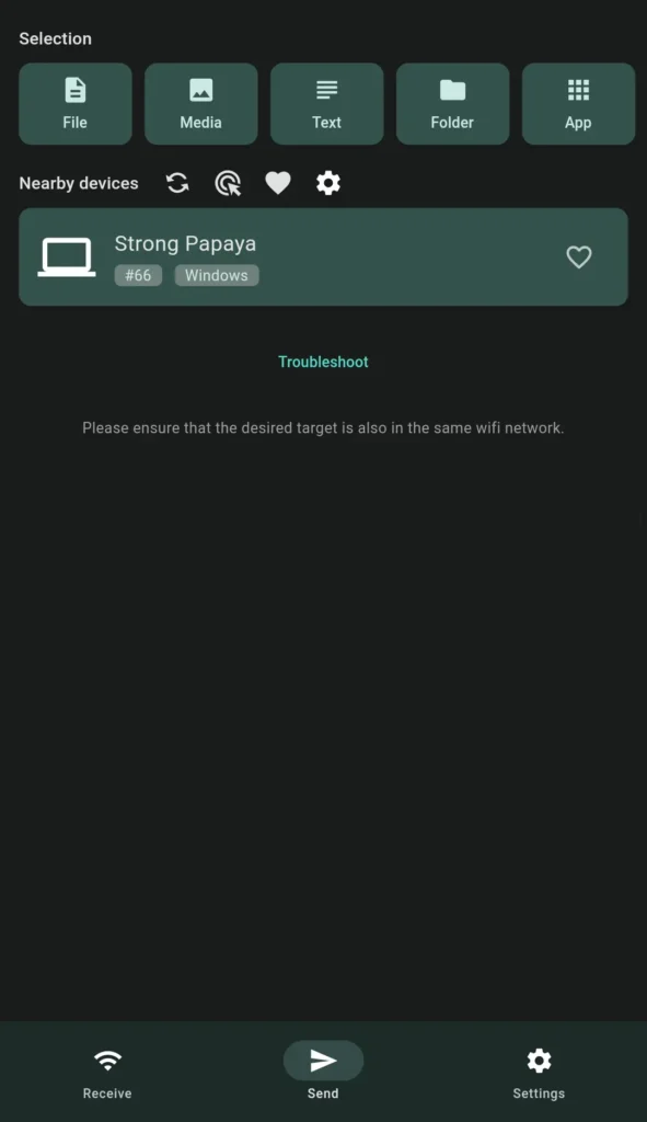 Пользовательский интерфейс довольно прост и удобен. Вы можете быстро установить его на свои устройства, подключенные к локальной сети (с доступом в интернет или без него), и запустить приложение как на отправляющем, так и на принимающем устройстве.