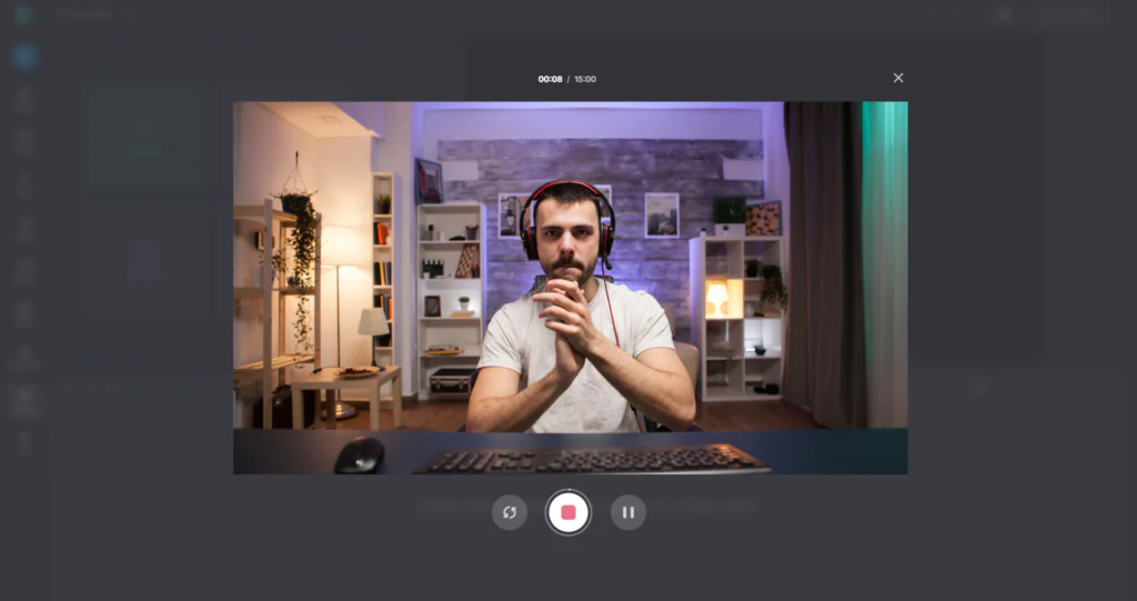 Интерфейс понятный, поэтому справится даже новичок. После окончания съемки сервис автоматически предлагает воспользоваться встроенным видеоредактором. Здесь можно обрезать лишние фрагменты, поработать над громкостью звука, а также добавить текстовые надписи. Сайт подойдет для коротких обращений, обучающих материалов и контента для социальных сетей.