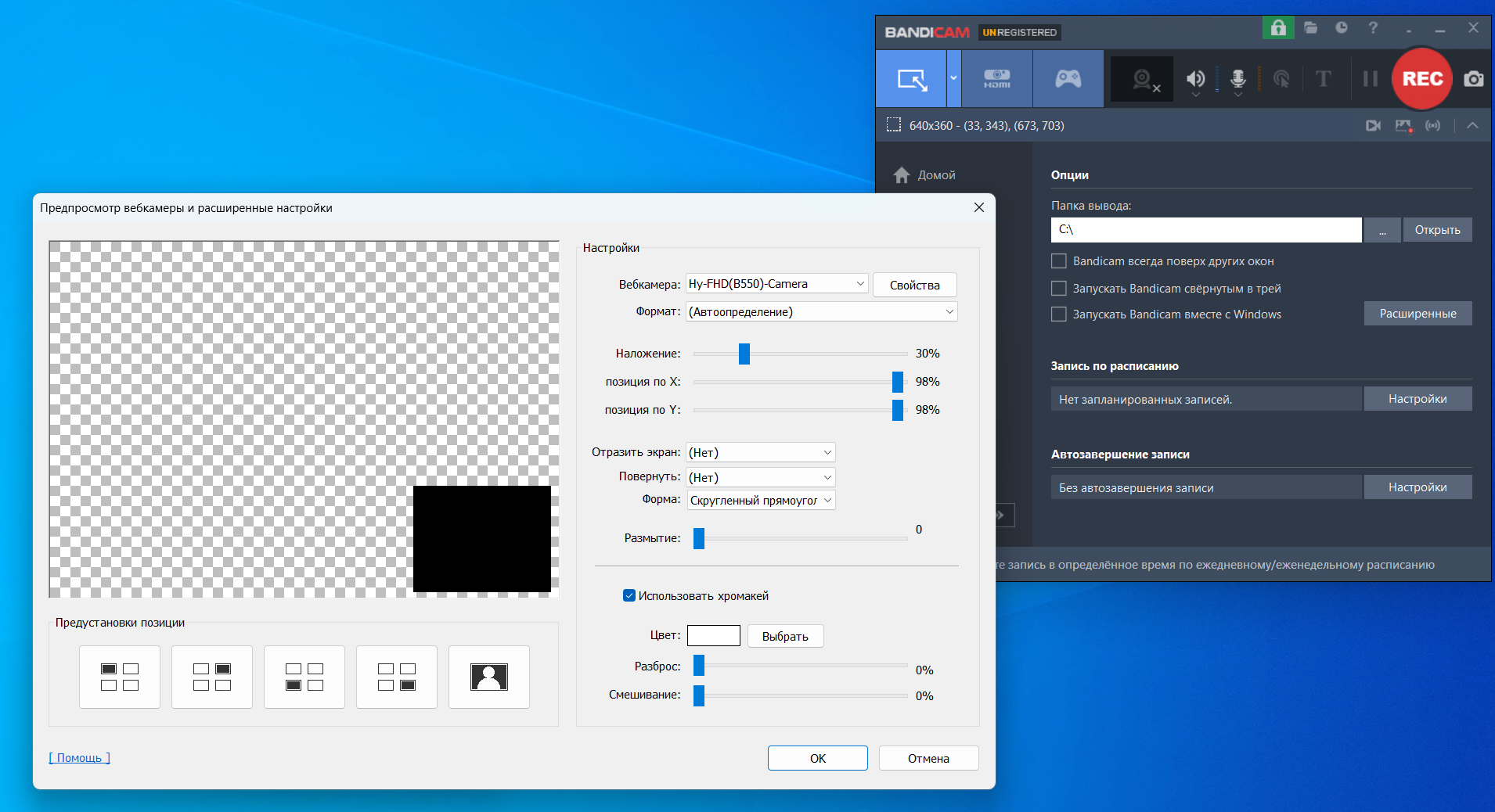 Это популярная программа для записи с веб-камеры на компьютер, которая часто используется для съемки игр и обучающих видеороликов. Bandicam позволяет адаптировать изображение под разные условия. Например, для игр, презентаций и инструкций можно настроить положение вебки так, чтобы она не закрывала важные детали.
