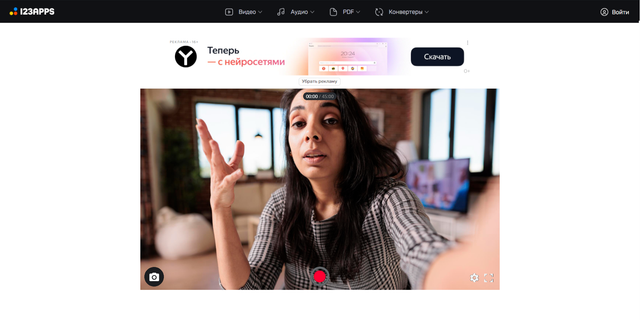 Это простой онлайн-сервис от проекта 123APPS для съемки. Подойдет людям, которым нужно быстро что-то снять, так как здесь нет сложных настроек, а для работы не обязательна регистрация.
